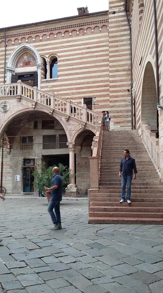 Abbiamo seguito la strada e ci siamo ritrovati davanti il palazzo scaligero del Capitano. Possente con la sua torre angolare che domina la piazza, la struttura è collegata da un arco che sovrasta una strada di epoca romana, al Palazzo della Ragione o del Comune, a strati alterni di tufo e di mattoni. Dall’arco si accede al cortile del Mercato Vecchio, con la splendida scala gotica a due rampe, detta Scala della Ragione, del XV secolo. Tornando sulla piazza a destra troviamo l’accesso alla Torre dei Lamberti, da cui ammirare un suggestivo panorama della città.