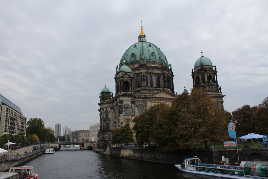 L’isola ospita inoltre il Berliner Dom. Completato nel 1905, è il più grande luogo di culto protestante della città, luogo di sepoltura della famiglia reale prussiana degli Hohenzollern. Questo meraviglioso monumento, pomposo richiamo al Rinascimento italiano, ha unito per secoli la corte prussiana degli Hohenzollern al protestantesimo tedesco ed è stato più volte rimaneggiato, a partire dal Medioevo. Dove oggi sorge il Duomo, infatti, già dal 1465 esisteva una cappella di Corte. La costruzione del Duomo iniziò invece nel 1747 e fu completata nel 1905 sotto il Kaiser Guglielmo II. Gravemente danneggiato durante la guerra, l’edificio è rimasto chiuso durante gli anni della Repubblica Democratica ed è stato riaperto solo nel 1993, a seguito dei restauri. La “vecchia” cattedrale del Lustgarten fu costruita tra il 1747 e il 1750, all’epoca di Federico il Grande (1740-1786), sotto la direzione di Johann Boumann, che realizzò un monumento barocco, coerente con il progetto di Knobelsdorff. Tra il 1817 e il 1822 l’edificio fu rimaneggiato dall’architetto Karl Friedrich Schinkel, pur conservando una certa somiglianza con lo stile alto-rinascimentale della cattedrale romana di San Pietro. Infine, nel 1885 , Julius Raschdorff presentò a Federico Guglielmo IV un progetto che mirava a “riconciliare” i diversi stili. Quando, nel 1888, salì al trono Guglielmo II, questi autorizzo la demolizione della “vecchia” cattedrale, dando il via, nel 1893, alla realizzazione della grandiosa struttura che vediamo oggi.
