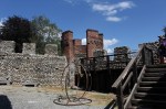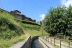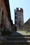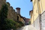 Iniziamo dunque il giro all’interno della fortificazione, varchiamo la torre-porta, ed entriamo in una piazzetta pavimentata con le pietre tondeggianti del vicino torrente. La costruzione più imponente, come detto, è il palazzo del principe. Le rue sono a ciotoloni inclinati e con pendenza da sud a nord per permettere il deflusso delle acque superficiali verso la torre di cortina. La rua principale, al centro, era calibrata in funzione del traffico dei carri; più ridotte sono le rue laterali.