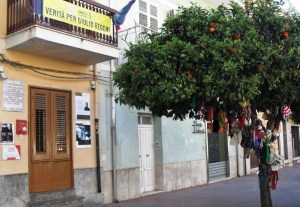 Proseguendo abbiamo fatto visita nell’ex casa di Badalamenti che oggi è una biblioteca. Qui, dove le mura hanno raccolto i peggiori ordini e dove forse è stato concertato e deciso l’omicidio di Impastato, oggi si trovano libri e informazioni di legalità. In un bene confiscato che è stati riconsegnato all’intera collettività. La casa di Gaetano Badalamenti è stata infatti consegnata al sindaco di Cinisi domenica 9 maggio 2010, alla fine del corteo per ricordare il 32° anniversario della morte di Peppino Impastato. La confisca ha seguito un lungo iter, cominciato il 4-4-1985, quando i giudici Falcone, Borsellino, Guarnotta e Di Lello hanno emesso il primo decreto di sequestro. I legali di Badalamenti hanno avanzato una serie di ricorsi, fino ad arrivare al provvedimento del tribunale di Palermo, n. 7/0 del 26-11-07, divenuto definitivo il 4-11-09 che ha definitivamente chiuso l’iter giuridico di confisca del bene, passato al demanio dello stato, e adesso consegnato ufficialmente al Comune di Cinisi.