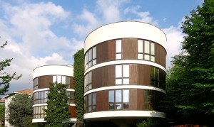 In zona San Siro, e più precisamente in via Gavirate 27, si trova un edificio residenziale molto particolare, perché fatto di tre cilindri. Costruita tra il 1959 e il 1962, l’efficio è stato progettato da Angelo Mangiarotti e Bruno Morassutti, per una cooperativa di funzionari statali. La scelta della forma è stata dettata sia dal fondo sconnesso del lotto sul quale è stata costruita, che dalla necessità di costruire appartamenti spaziosi e molto luminosi. La struttura consta di tre torri, ognuno di tre piani, disposti a triangolo e collegati da un elemento centrale vetrato, contiene le scale e gli ascensori. In ognuno dei tre elementi circolari si trova un appartamento per piano, per un totale di nove appartamenti, a cui ne va aggiunto un decimo per il custode che si trova al piano terreno di uno dei tre cilindri (negli altri due il piano terreno è libero). Alla sommità sono ospitate tre terrazze-giardino.