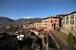 Al lato si apre una piccola via che porta alla piazza su cui si affaccia la chiesa di Santa Maria Annunciata, costruita nel XV secolo tra i vicoli stretti e le alte case. Ritornate in via Contrizio dove troverete casa Bettoni, un palazzotto rinascimentale che ha conservato la struttura originaria. In cima alla via c’è un imponente portale di quella che era la torre Rizzieri. Si arriva quindi dunque in piazza Castello con l’antica torre Mendeni e, continuando la salita, si passa sotto un’altra torre più minuta rispetto alle precedenti. Proprio qui vo troverete davanti la chiesa seicentesca e il suo ampio sagrato, proprio di fronte alla chiesa, dedicata ai santi Faustino e Giovita, c’è palazzo Francesconi con la galleria affrescata dal Fiamminghino.