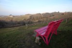 Ma in vetta alla collina si trova una delle panchine giganti delle Langhe. Seduti sulla enorme struttura viola potrete ammirare il paesaggio. A Monforte, e in particolare in località cascina Castelletto si trova una panchina di colore rosa. In località Borgate Palazzetto a Clavesana si trova invece una delle prime strutture realizzate dal progetto Big Bench Community Project.