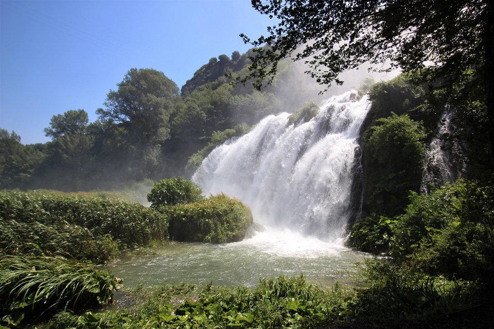 Centosessantacinque metri in tre salti. È la Cascata delle Marmore, una delle più famose d’Italia, che si trova in Valnerina a poca distanza dalla città di Terni, nel meraviglioso Parco Naturale. Le sue origini risalgono al 271 avanti Cristo, quando il console romano Manio Curio Dentato ha ordinato la costruzione di un canale per far defluire le acque stagnanti del Velino verso il Nera, deviando il corso del fiume. Da qui la nascita delle cascate delle Marmore. Il nome è stato ispirato dalla presenza di sali di carbonato di calcio che, sedimentandosi sulle rocce della montagna, grazie alla luce del sole sembrano cristalli di marmo bianco. Marmore è anche il nome del vicino paese medievale, uno dei borghi più belli della Valnerina assieme a Piediluco e Arrone.