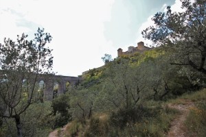 A pochi passi dalla rocca si trova il Ponte delle due torri. La struttura, che collega la Rocca e il Monteluco, è unica nel suo genere, tanto da far innamorare turisti e scrittori celebri. Goethe ne ha scritto nel suo Viaggio in Italia, mentre  il pittore inglese Turner lo ha ritratto in diversi quadri.  Lungo 230 metri e alto 82, il ponte è stato costruito intorno al Duecento, a seguito del saccheggio di Spoleto da parte di Barbarossa.