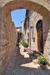 La visita inizia dalla parte bassa, dove si trova una villa romana ricca di mosaici. Dopo la visita entrate nella cittadina usando una delle numerose porte medievali, come quella Consolare che segnava l’ingresso in città della via Flaminia. Salite lungo l’antica via e seguite il percorso. La porta forse più nota è quella di Venere, che costruita in età augustea, ha un arco trionfale contornato da due torri di Properzio a pianta dodecagonale.