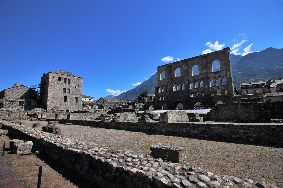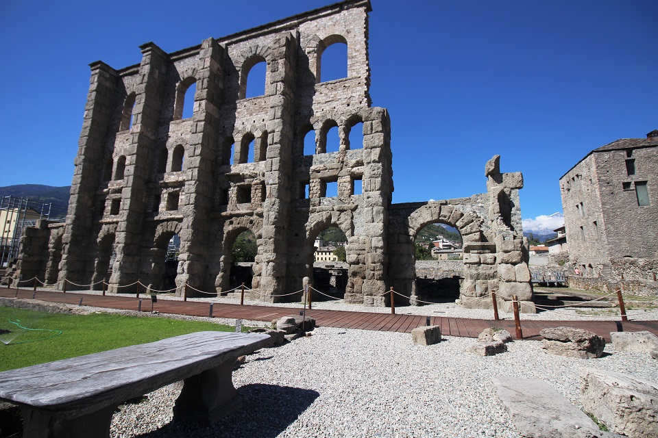 Qui, tra cime imbiancate e montagne, i romani hanno lasciato un ricco patrimonio di monumenti: l’Arco di Augusto, la Porta Praetoria, il Monumentale Teatro Romano, l’Anfiteatro, il Ponte e molti altri luoghi in parte conservati. Si aggiungono poi le testimonianze dell’epoca medievale, fatte di chiese, forti, conventi e castelli.