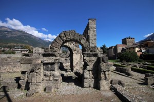 La prima traccia romana si trova al limite del centro storico di Aosta: l’Arco di Augusto. Costruito intorno al 25 avanti Cristo, l’arco è stato edificato per festeggiare la vittoria contro i Salassi e la fondazione della nuova colonia romana. Nei pressi dell’arco si trova il Ponte Romano.