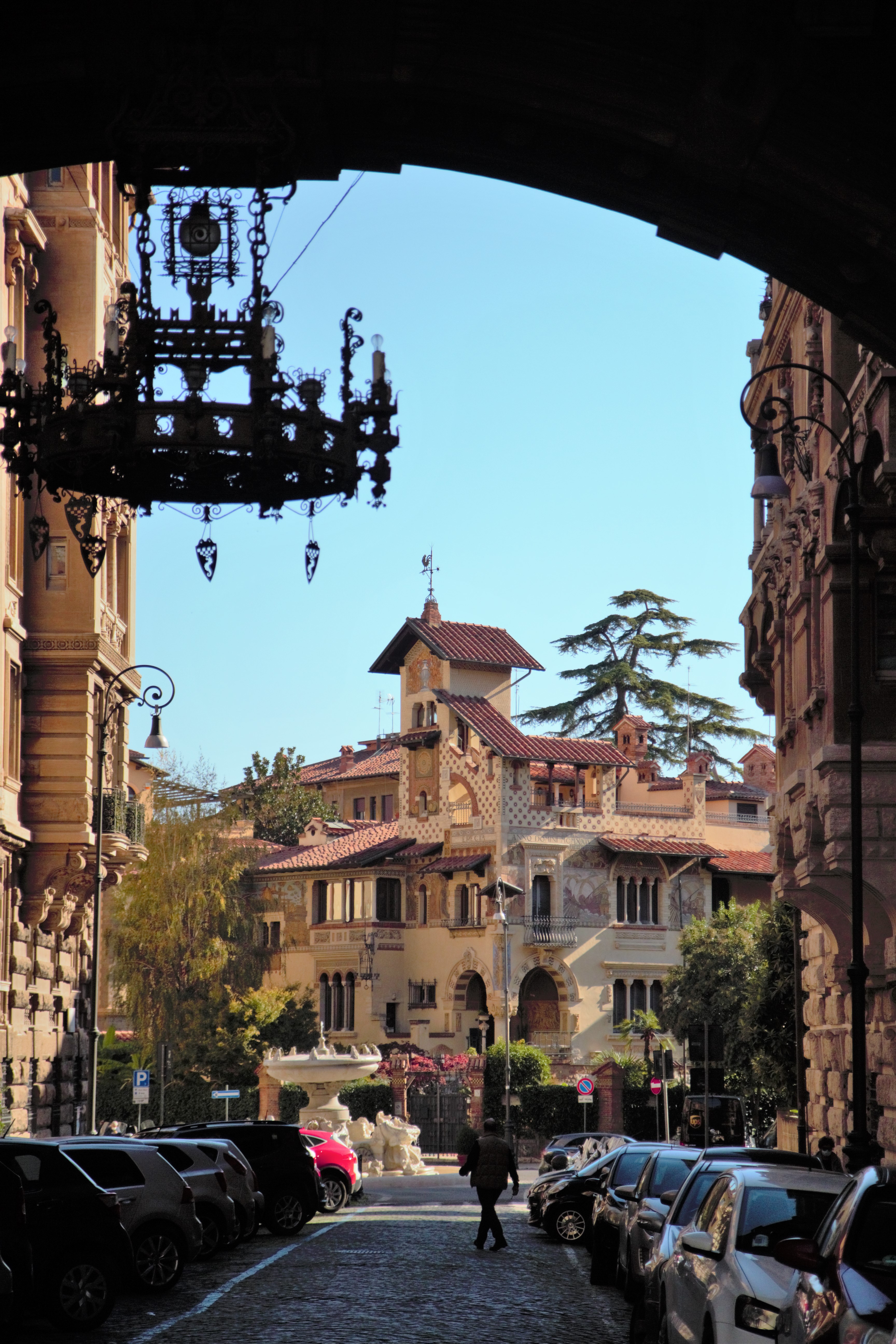 Il “quartiere” era nato per “ospitare” la borghesia romana e i ceti medio-alti. Ma dopo la Prima Guerra Mondiale, le condizioni economiche sono cambiate e i costruttori hanno deciso di creare un’area ancora più esclusiva, in cui ogni elemento è stato ideato per destare meraviglia e per rispondere alle esigenze di lusso dei borghesi. Tuttavia la Commissione edilizia, che intendeva dare un’impronta romana, indusse l’architetto a usare cornici e modanature stile Roma imperiale ed un arcone, affiancato da due torri, che in qualche modo avrebbero potuto richiamare gli archi di trionfo del Foro Romano.