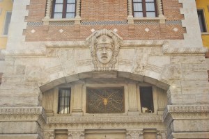 Proprio questo, che sancisce l’ingresso dell’area, è decorato e unisce i palazzi degli ambasciatori. Inoltre la volta è impreziosita al centro da un grande lampadario. La struttura è arricchita inoltre da affreschi e decorazioni che proseguono su tutta la superficie con stucchi, cornicioni, mascheroni, balaustre, bugnati, statue e logge disposte in modo asimmetrico. Sulla torre di destra è stata inoltre realizzata un’edicola con la Madonna che sorregge il Bambino.