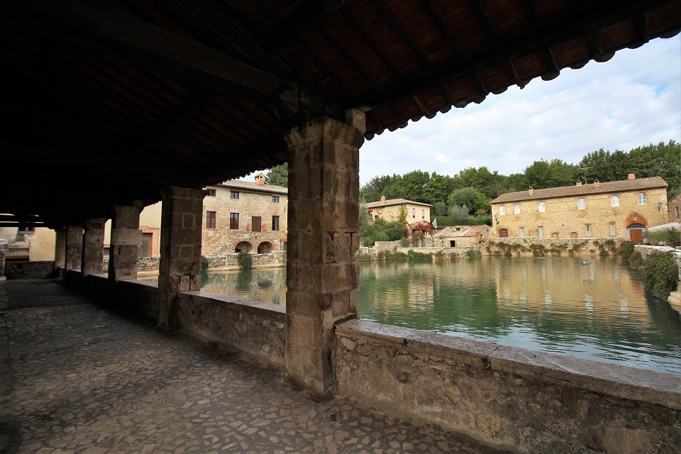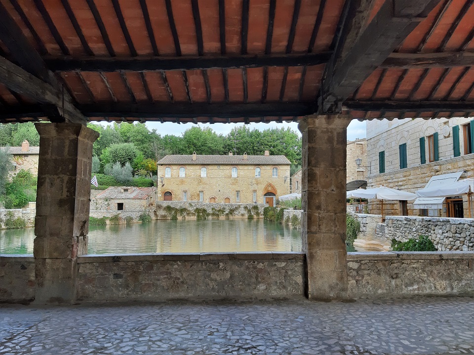 Perché la frazione, che si trova all’interno del Parco Artistico Naturale della Val d’Orcia, “racchiude” acque che sgorgano naturalmente, tanto da diventare all’epoca dei romani uno dei centri termali più importanti della Toscana.