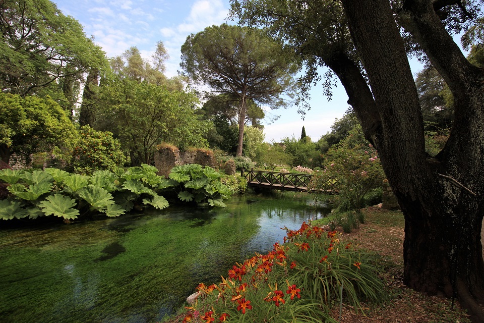 Soltanto verso la fine dell’800 la famiglia Caetani avvia le opere di bonifica, grazie alle quali vengono prosciugate le paludi, estirpate le erbe infestanti. E non solo, perché i Caetani iniziano a creare il giardino all’inglese fatto di cipressi, lecci, faggi, ma anche rose. Hanno avviato le opere di restauro creando il giardino dall’aspetto romantico.