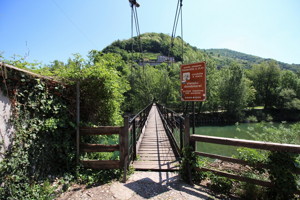 Oggi per attraversare il fiume si può imboccare il “ponte sospeso” oppure “Ponte che balla”. È uno dei primi esempi ottocenteschi di struttura realizzata con la tecnica delle funi portanti sulla riva. La struttura, realizzata intorno al 1878 per volere di Vincenzo Beltrami, il proprietario del castello di Clanezzo, si ispira ai famosi tibetani ed è lungo 75 metri.
