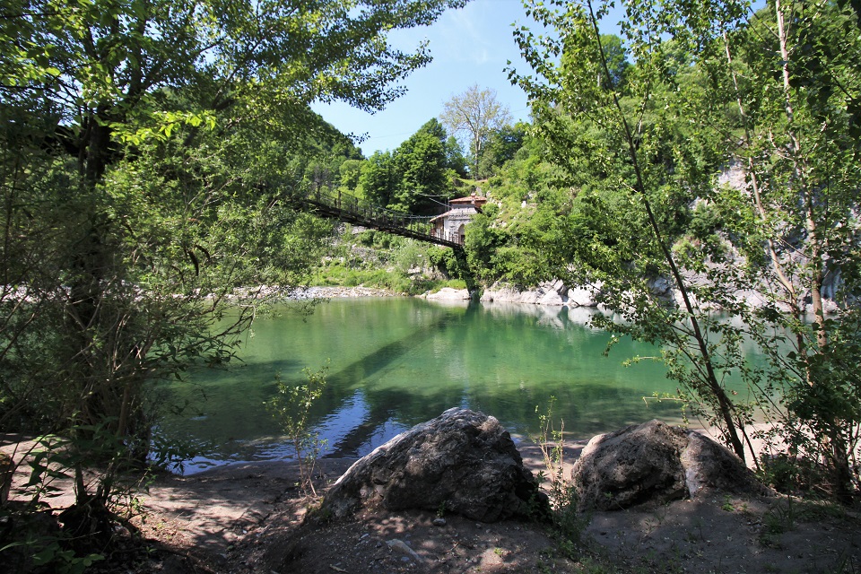 Qui il rumore dell’acqua che scorre, il fruscio degli alberi, il suono delle scarpe sui ciottoli e sugli scalini in pietra accompagnano ogni singolo passo. Così ai piedi del ponte Ubione, il torrente Imagna si tuffa nel Brembo e le Valli Imagna, Brembana e Brembilla si incontrano per regalare uno spettacolo unico.