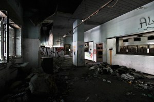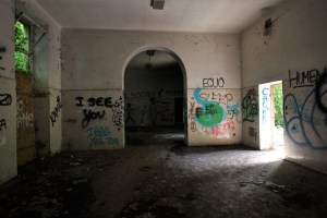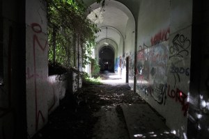 Il pavimento è coperto di cocci, vetri in frantumi, mentre i cunicoli bassi conferiscono un’atmosfera “oscura” e lugubre. Sul soffitto si scorgono squarci giganteschi, mentre i muri sono ricoperti di scritte.