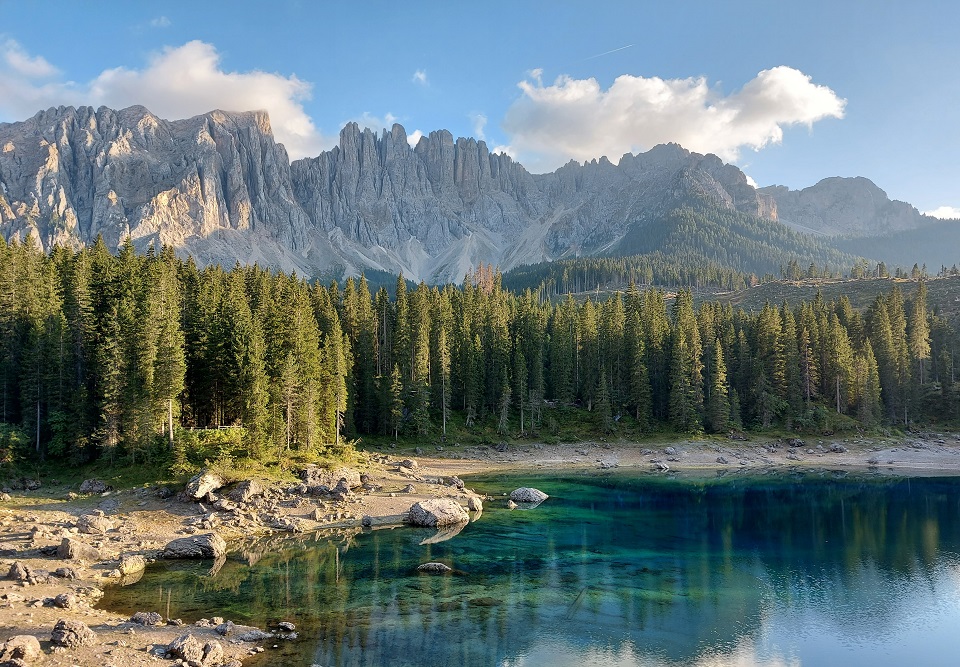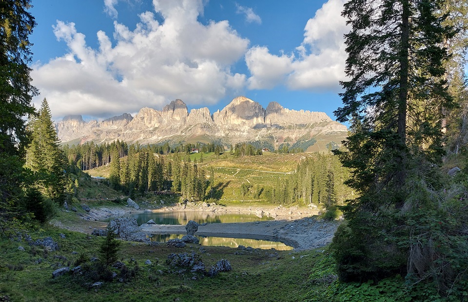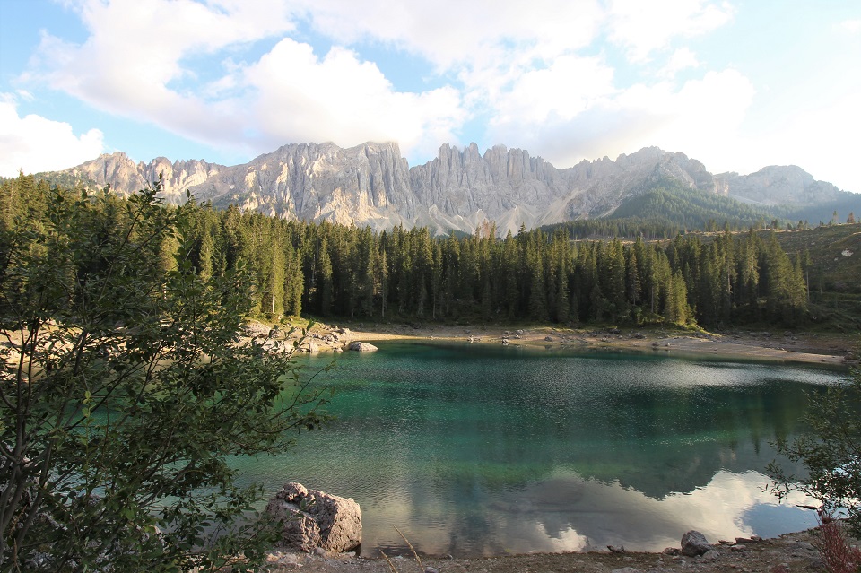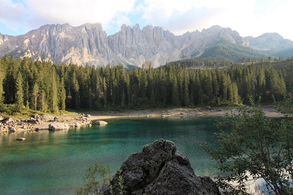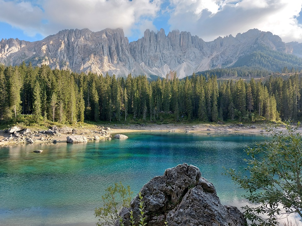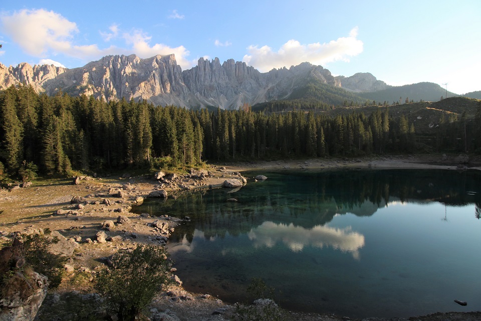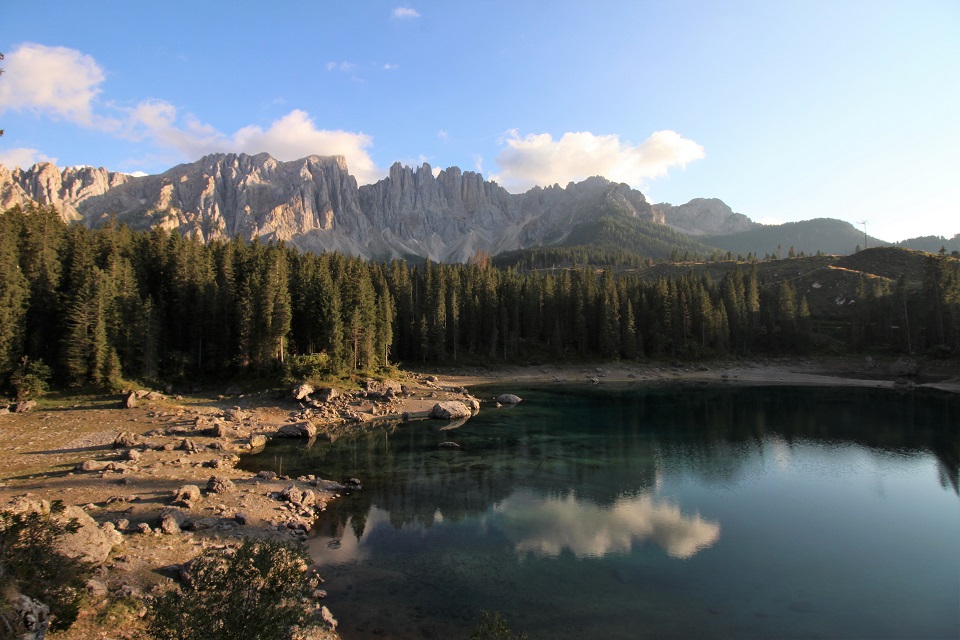 È adagiato ai piedi del massiccio del Latemar in una conca ai bordi del bosco il lago di Carezza. Lo specchio d’acqua, che si trova a 1.502 metri di altitudine, viene spesso indicato come Lec de Ergobando, lago dell’arcobaleno. Termine in cui risiede la spiegazione del nome del lago che ogni anno richiama in Val d’Ega a 6 chilometri di distanza da Nova Levante, centinaia di turisti.