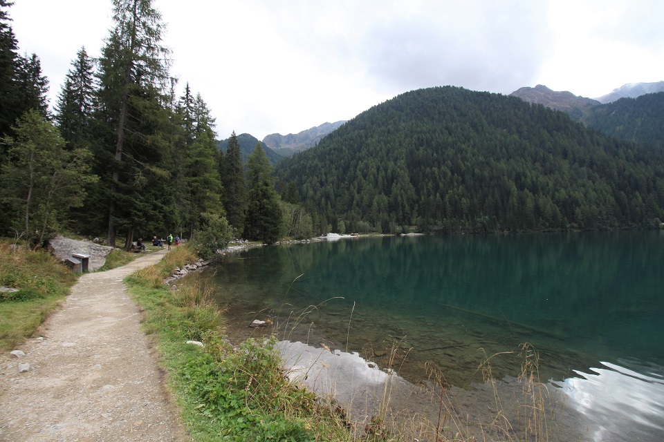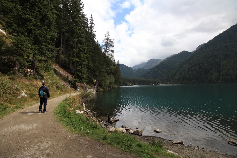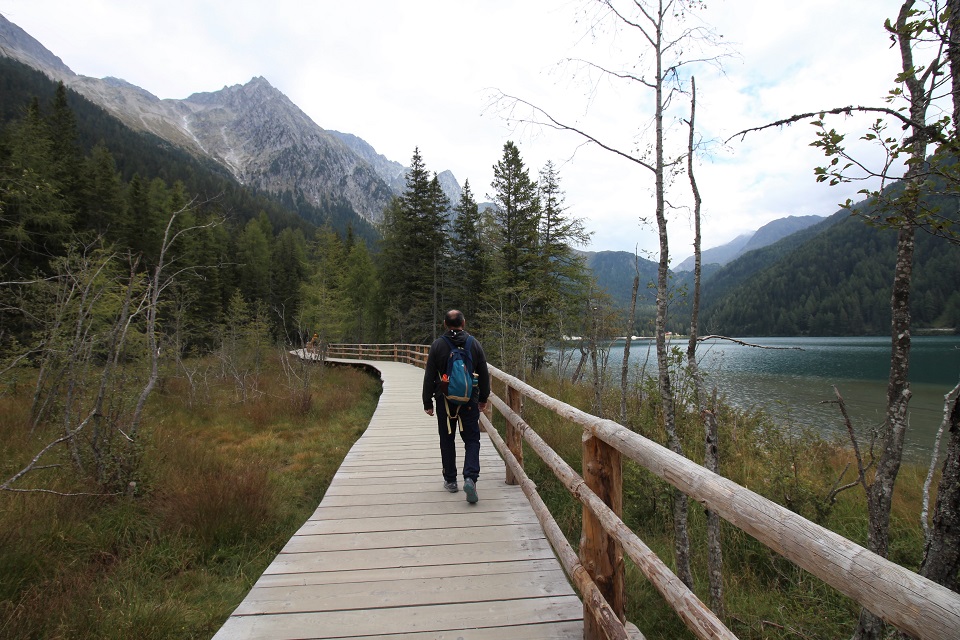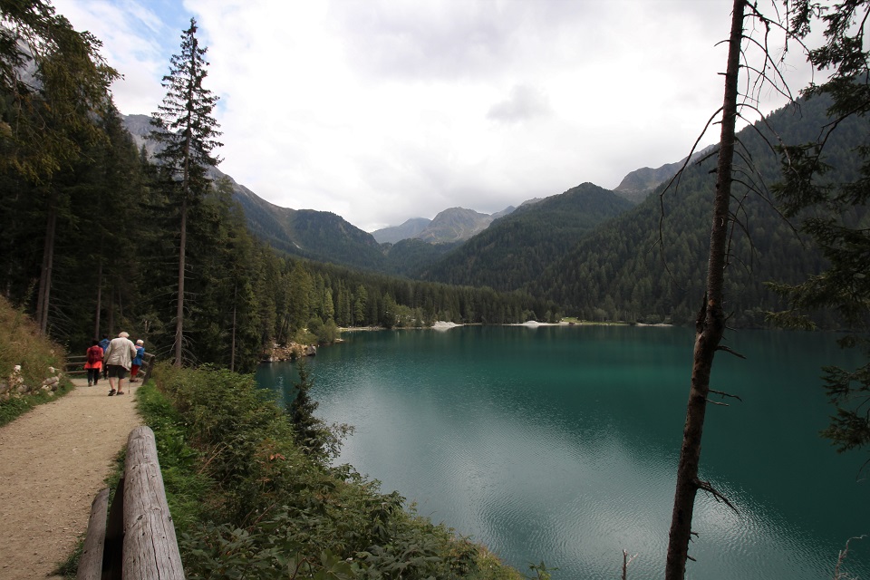 Il giro del lago, di 2.7 chilometri, parte dalla baita Tirolerhütte, poco dopo dal centro di biathlon che ogni anno regala gare. Qui si può decidere di seguire il Sentiero natura, un percorso che, inaugurato nel 2003, offre tabelloni ricchi di informazioni e approfondimenti. Il primo tratto si snoda su una passerella in legno e lungo la riva del lago, a pochi passi dalle acque del lago, dove vivono cigli e altri uccelli. Il sentiero si snoda poi attraverso il bosco e prosegue fino a un ristorante, dal quale si accede al passo Stalle. È qui che il percorso si inerpica e permette di godere della vetta del Collalto che si riflette nel lago.