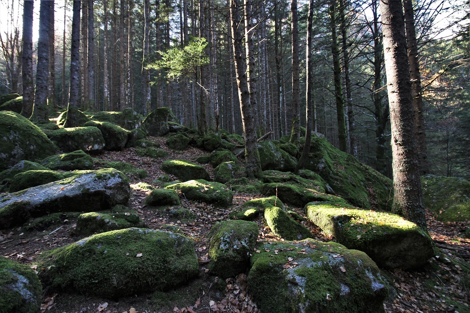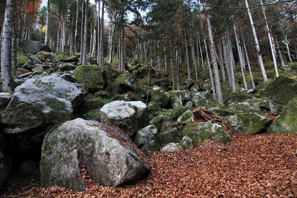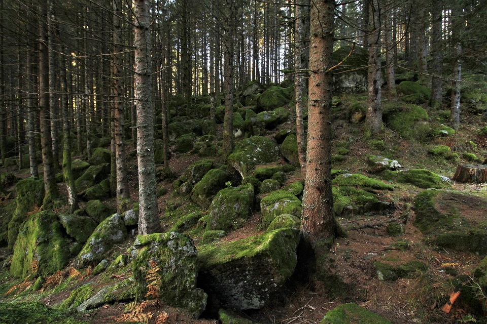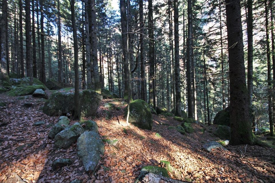 Verde come il muschio delle pietre, giallo come il fogliame degli alberi, arancioni come le foglie cadute, marrone come i tronchi. Sono i colori della Foresta dei Bagni di Masino, una foresta di 23mila ettari della Regione Lombardia.
