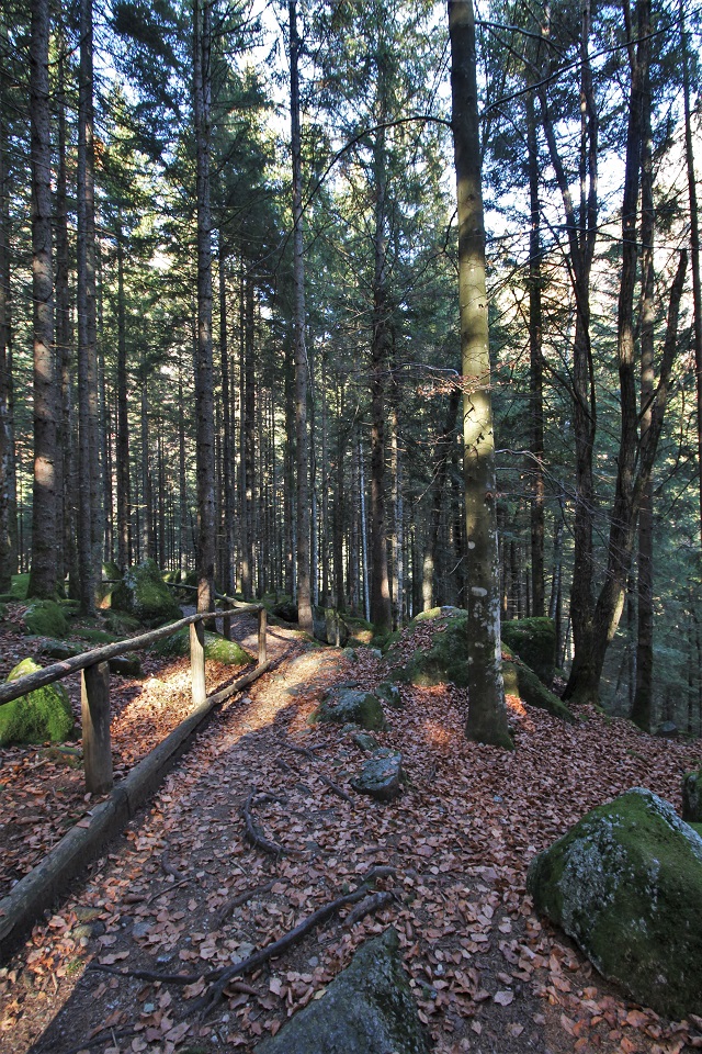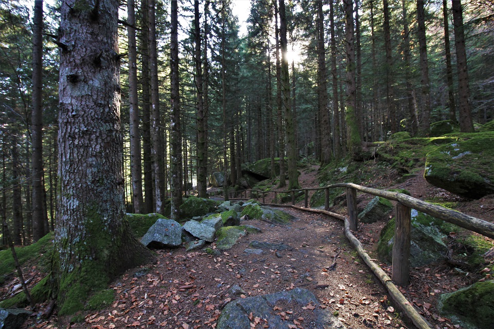Qui è stata inoltre posizionata una centralina di rilevazione dello stato di salute del’ ecosistema forestale. Proseguendo si entra nel bosco dove tra gli abeti è possibile intravedere altri massi, accompagnati da larici, faggi. Il quinto punto di sosta è una semplice panchina sulla quale sedersi per poter ammirare la bellezza del posto.
