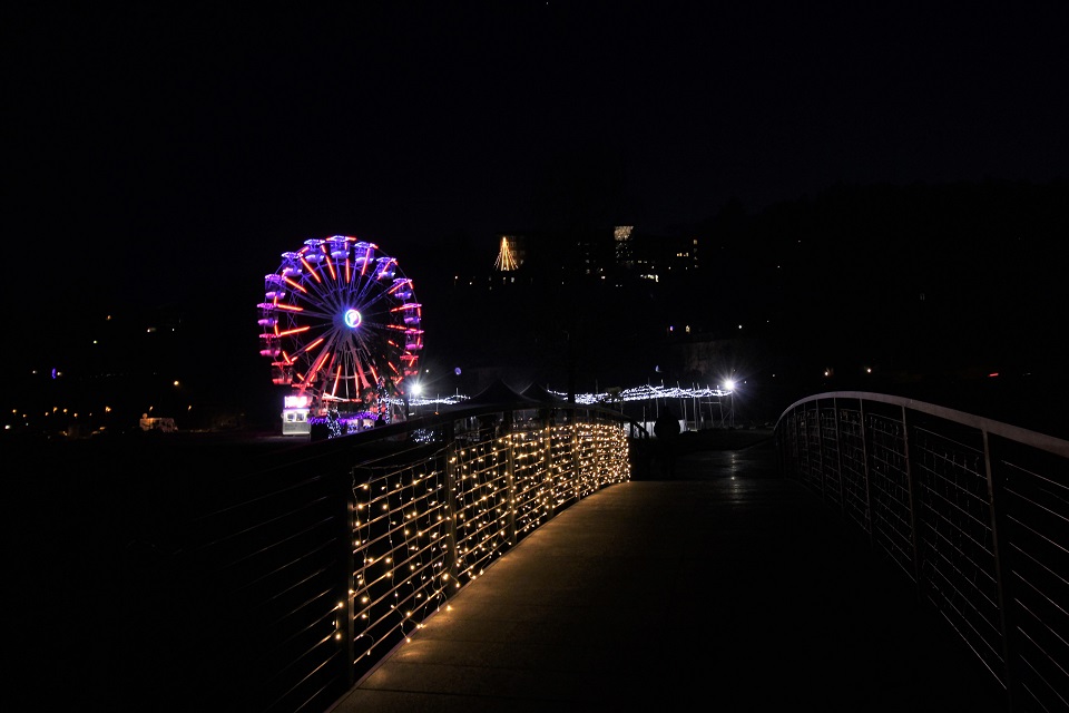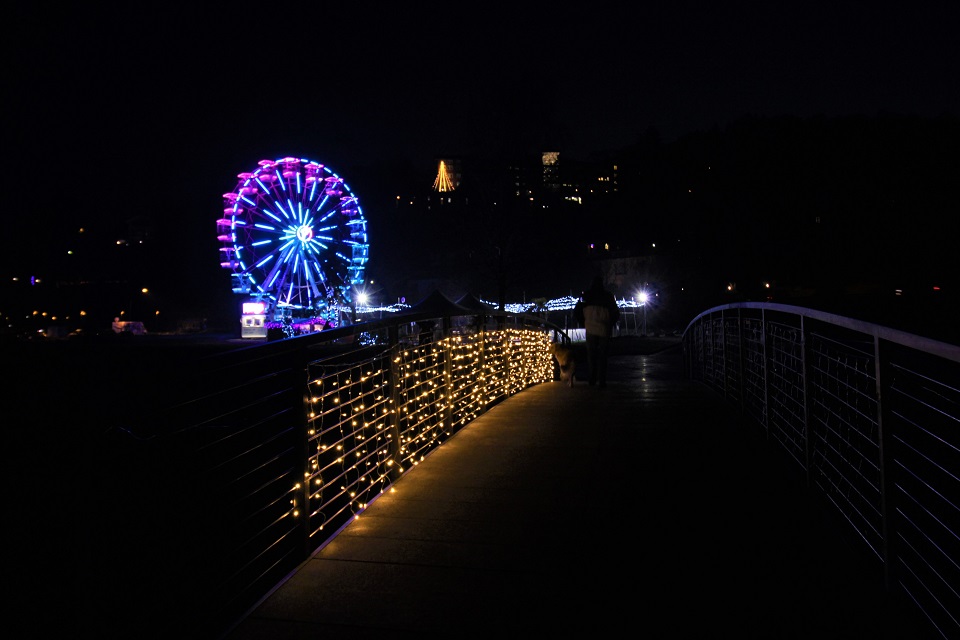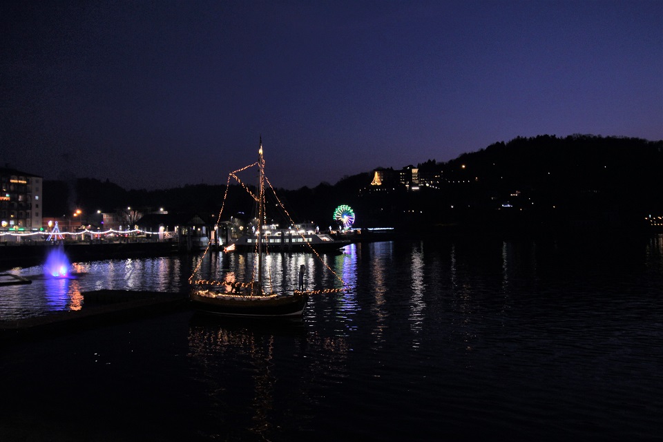 Ma le luci e le atmosfere natalizie si respirano anche sul lungolago, da dove si scorge la grande ruota panoramica che si affaccia sul lago, e con lei anche la pista di pattinaggio e il mercatino. L’intera passeggiata è decorata con luci che al calar della sera si accendono per regalare scorci indimenticabili.