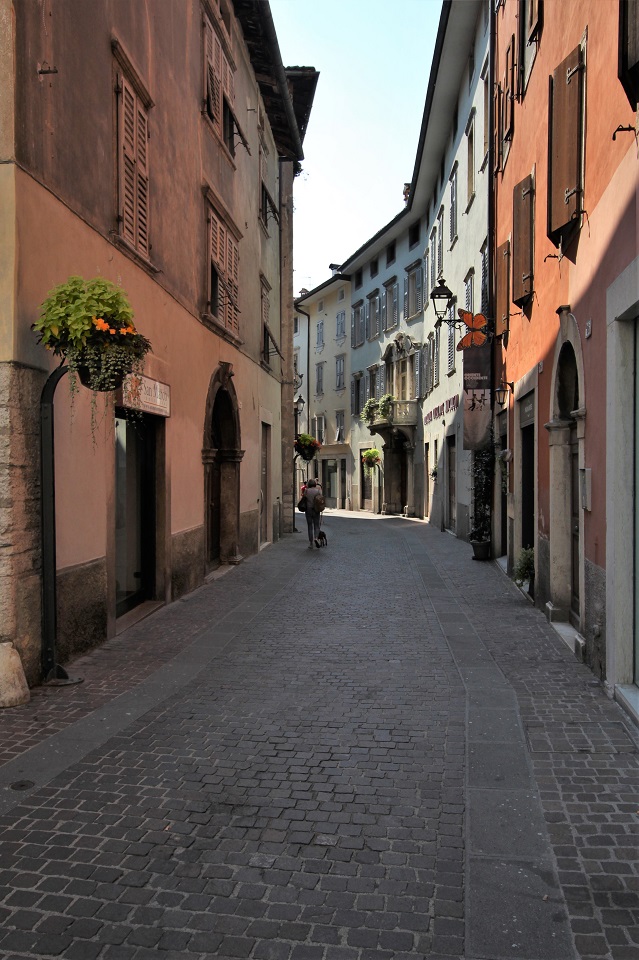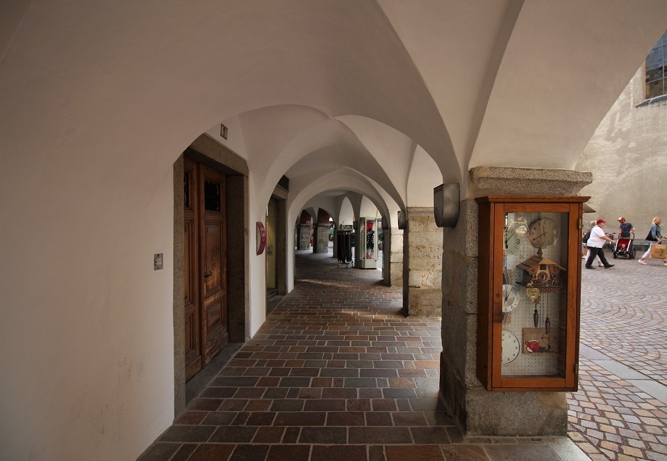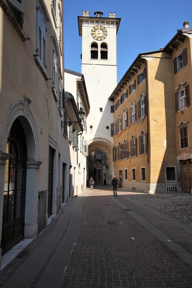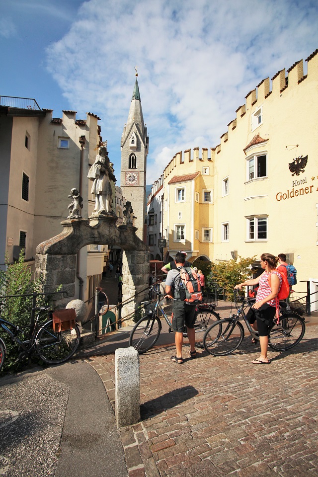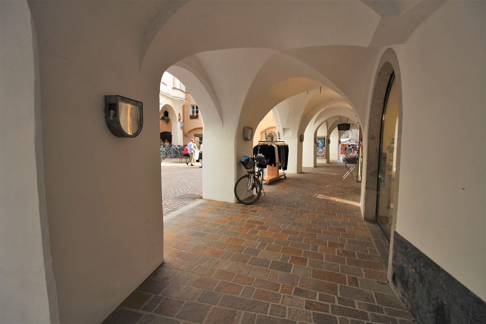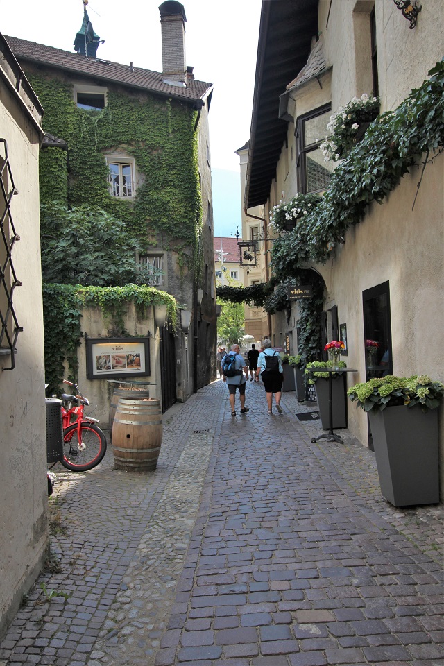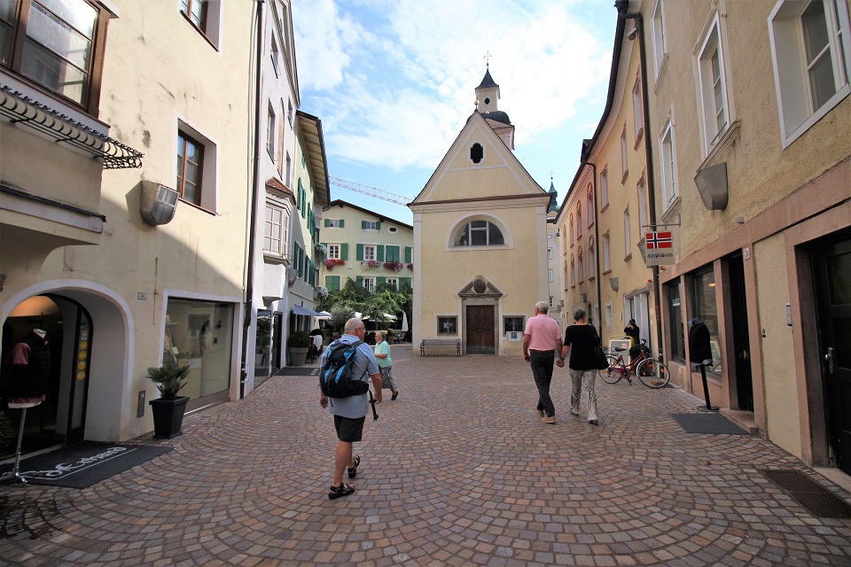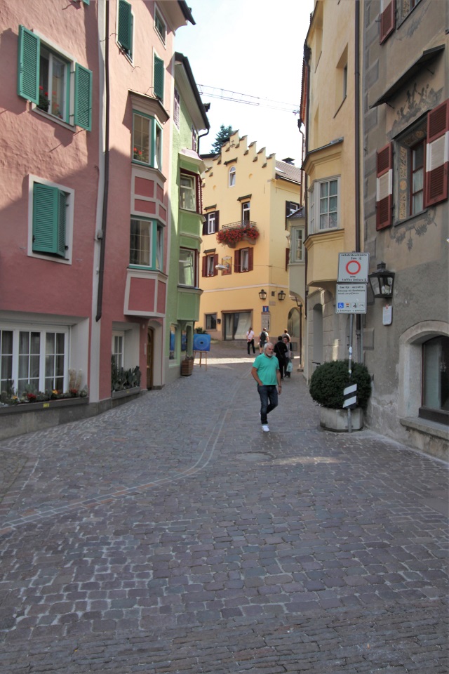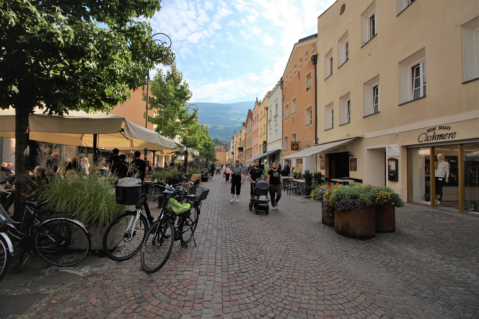 Il centro storico è invece costituito da palazzi di color pastello che si addossano uno di fianco all’altro, mentre i tipici portici altoatesini offrono riparo dal sole, dal vento e della piaggia. Tra le vie è possibile scorgere negozi e botteghe, ma anche biciclette. Le vie principali in cui perdersi sono: via dei Portici Maggiori e via Sant’Albuino.