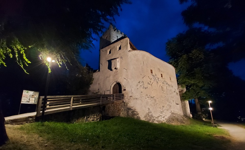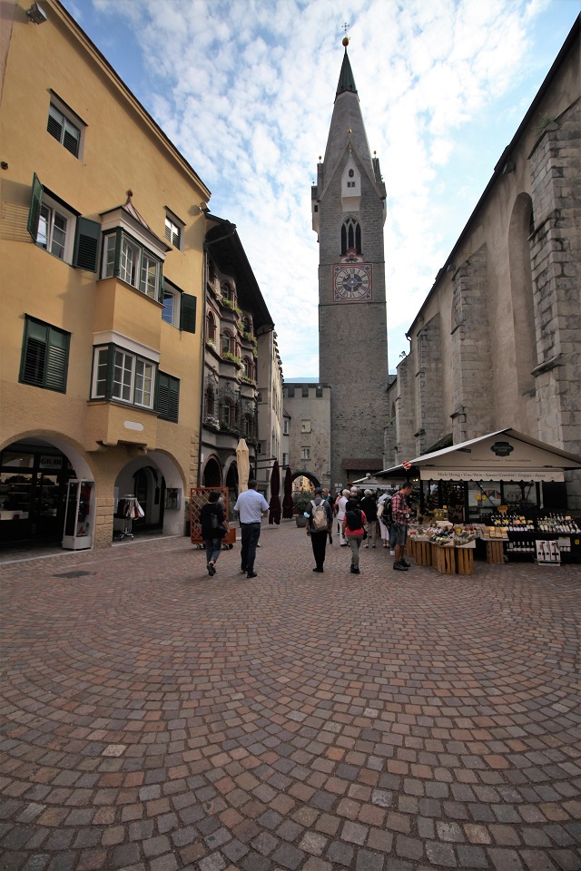 Sosta alla chiesa di Santa Maria Assunta, con l’organo più grande dell’Alto Adige, e si ritorna nei pressi della porta Ragen per salire al castello che domina la collina. Di questa fortificazione si inizia a parlare intorno al 1.200, anche se le prime ristrutturazioni, volute dal principe vescovo Albert von Enn, risalgono al 1324. Il castello è la testimonianza della mescolanza di diverse epoche, ma ancora oggi riesce a mantenere la sua architettura, e oggi ospita al suo interno uno dei sei musei di Reinhold Messner dedicato alla montagna.