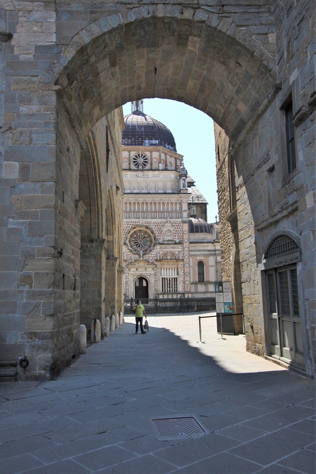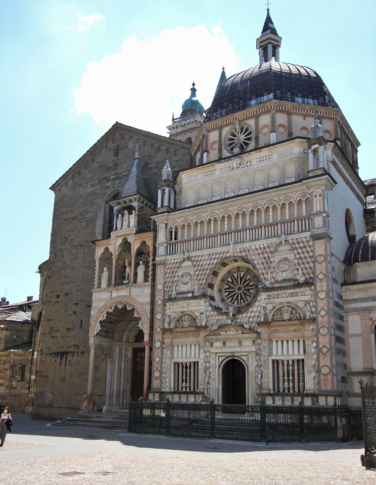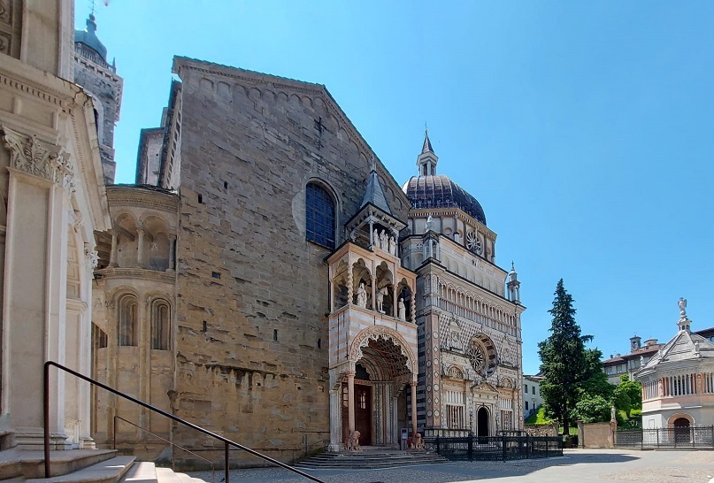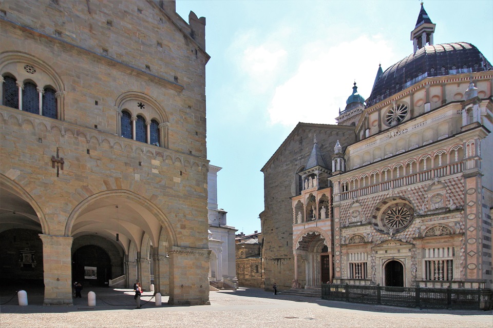 Passando dal porticato del palazzo della Ragione si incontra Piazza del Duomo che ospita la Basilica di Santa Maria e la Cappella Colleoni. La basilica, realizzata nel 1133 come voto contro la peste, è l’edificio più importante della Piazza. Accanto alla Basilica si trova la Cappella Colleoni in cui è stato sepolto Bartolomeo Colleoni, capitano di ventura che ha lavorato principalmente al servizio di Venezia.