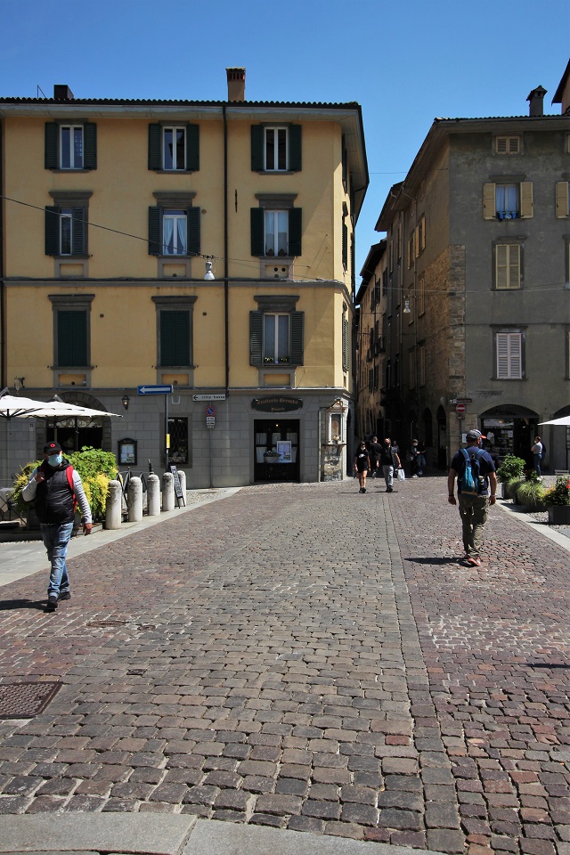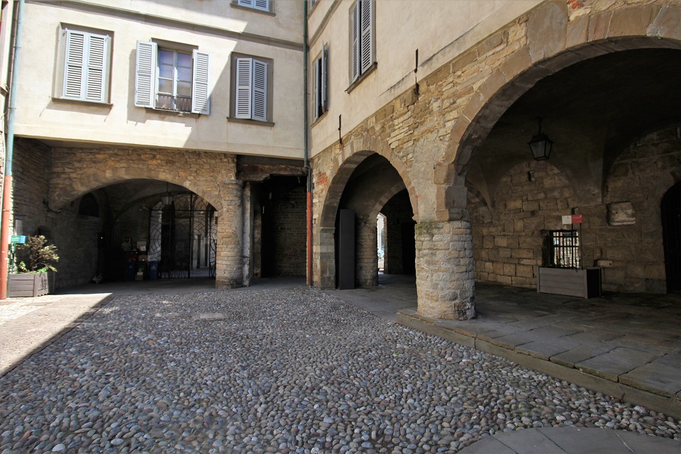 Il tour parte da Piazza Mercato delle Scarpe, da dove in pochi passi si raggiunge piazza Vecchia. Sull’intero spazio si affacciano il palazzo della Ragione, il palazzo del Podestà, la Biblioteca Angelo Mai con i suoi 600 volumi antichi e il Campanone, la torre simbolo di Bergamo. L’area è divisa da Piazza Duomo dal portico del Palazzo della Ragione, mentre il centro è occupato dalla Fontana Contarini, con le sue sfingi e i quattro leoni, simbolo di Venezia.  Opera che è stata regalata dal Podestà di Venezia, Alvise Contarini, quando nel 1780 ha lasciato il suo incarico a Bergamo. La fontana, nata per abbellire la piazza, era tuttavia utilizzata per portare l’acqua nel centro della Città Alta e renderla fruibile a tutti.
