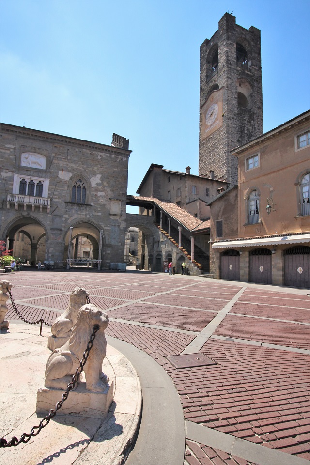 Sulla piazza si affaccia inoltre il “Campanone“, che in realtà si chiama Torre Civica. Grazie ai suoi 53 metri di altezza è una delle più alte d’Europa ed è diventata nell’arco del tempo simbolo di Bergamo. Ogni sera alle 22 le campane suonano 100 rintocchi per avvisare della chiusura delle porte della Città Alta.