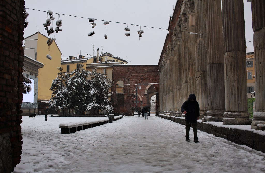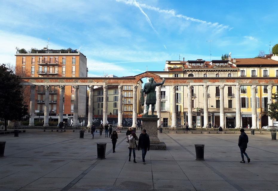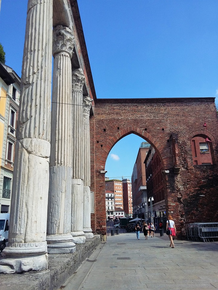 È invece testimonianza del passaggio dei romani a Milano la basilica di San Lorenzo maggiore alle colonne. L’edificio ricostruito e modificato più volte nelle forme esterne conserva l’antica pianta di epoca tardo-imperiale. E con le colonne, un tempo parte integrante dell’edifico, è tra i maggiori complessi monumentali di epoca romana tardoimperiale di Milano, nel periodo in cui la città romana di Mediolanum (era capitale dell’Impero romano d’Occidente. Inoltre la basilica è la prima struttura a simmetria centrale dell’Occidente Cristiano.