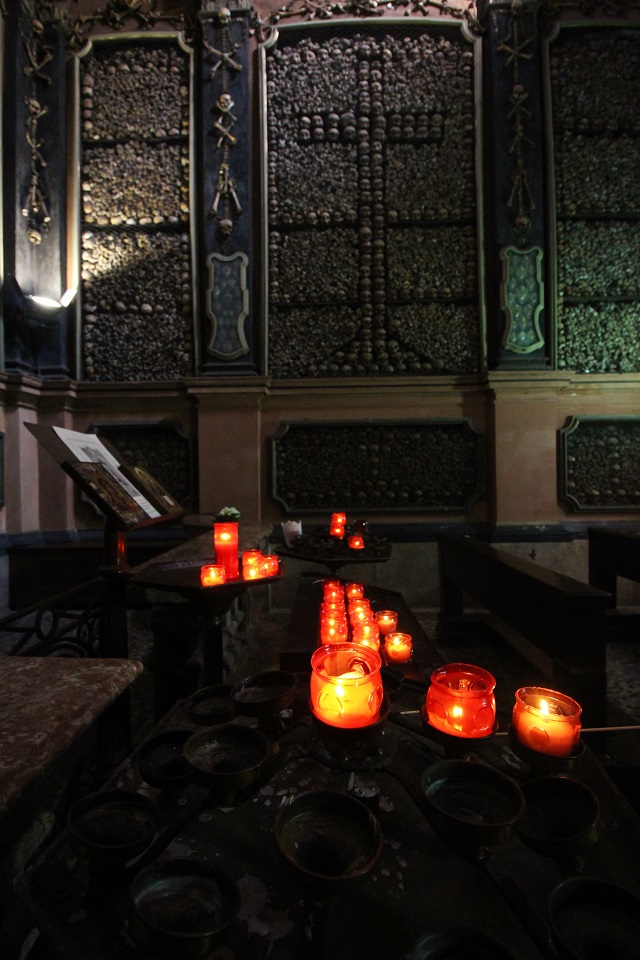 La costruzione risale al 1145, quando Gotifredo da Busserò ha fatto edificare un ospedale e davanti la basilica è stato costruito un cimitero per seppellire le persone che morivano nella struttura. Tuttavia dopo poco tempo lo spazio ha iniziato a diminuire, per questo motivo nel 1210 in fondo al cimitero presso il vicolo che fiancheggia la basilica, è stata innalzata una camera per “radunare” le ossa esumate dal cimitero. Tuttavia l’attuale composizione si deve alla confraternita nel che nel 1695, a seguito del crollo del campanile, ha fatto costruire la cappella ossario. Le pareti interne dell’edificio a pianta quadrata sono ricoperte da teschi e ossa che si trovavano nell’antico Ossario insieme alle ossa esumate dai cimiteri poi distrutti dopo la chiusura dell’ospedale, avvenuta nel 1652. Le ossa sono state posizionate nelle nicchie, sul cornicione, sui pilastri, e perfino sulle porte. In uno stile macabro che si fonde con il rococò.