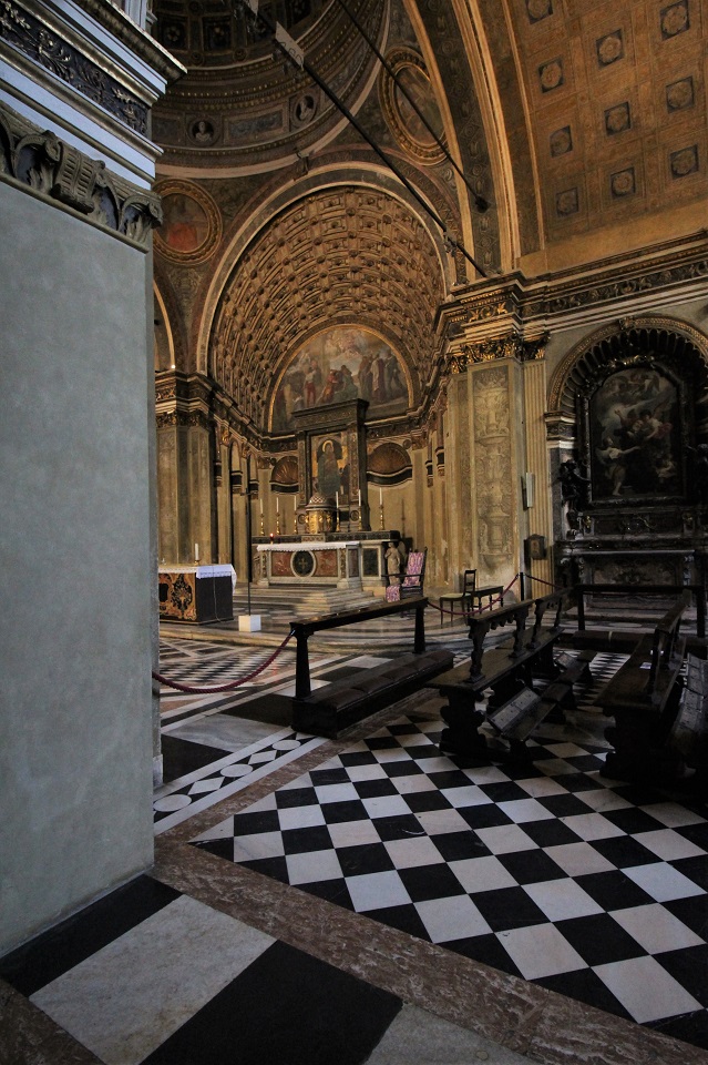 Il viaggio continua in via Torino dove si trova Santa Maria in San Satiro. Qui si può ammirare una delle opere più belle di Donato Bramante. Il pittore, avendo a disposizione poco spazio nella navata centrale con i suoi 97 centimetri invece di 9 metri e 70 previsti dal disegno originale, ha creato un vero e proprio capolavoro. Qui l’architetto ha realizzato un finto presbiterio con una volta a botte cassettonata in stucco. L’illusione è prospettica, ma grazie a questa l’intera navata “respira”. La piccola basilica custodisce inoltre l’originario sacello dedicato al culto di San Satiro (fratello di Sant’Ambrogio), edificato alla fine del IX secolo, inglobato nella chiesa tra il 1476 e il 1482. Qui si trovano i volontari del Touring club, che regalano chicche e spiegazioni.