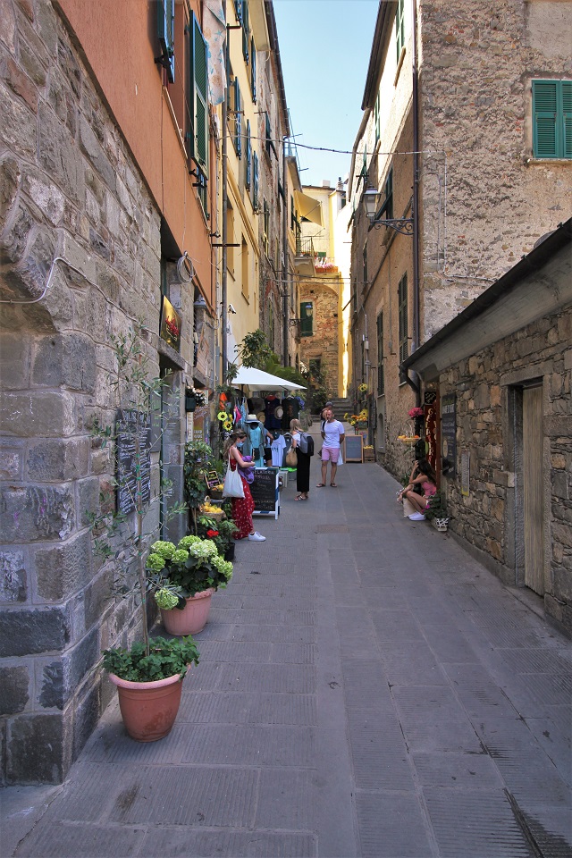 Si prosegue e si raggiunge Corniglia, l’unico borgo che non si affaccia direttamente sul mare. Le case colorate si ergono sul promontorio che, alto circa cento metri, è circondato da vigneti coltivati su terrazzamenti a fasce. Per raggiungere il centro di Corniglia è possibile prendere la navetta, oppure salire lungo la scalinata detta Lardarina. Questa, composta da più di 350 gradini, unisce la costa con la vetta del promontorio.