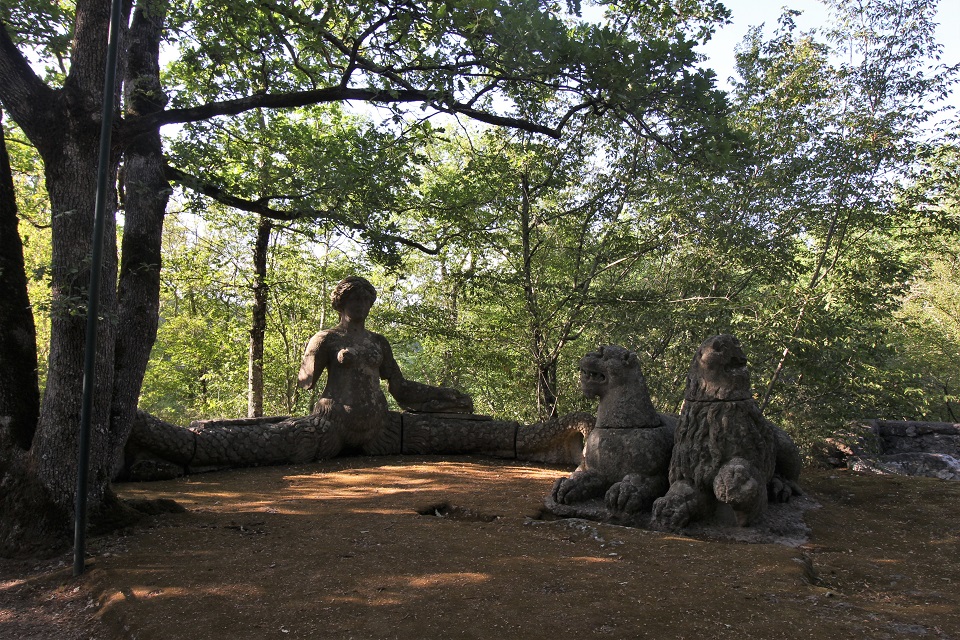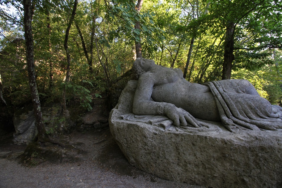 Sono in pietra le creature dei miti che “abitano” il bosco sacro di Bomarzo. Qui in piena Tuscia, le leggende si sono fatte materia e, ricoperte dal muschio, proteggono dopo secoli il mistero che avvolge la costruzione dell’area.