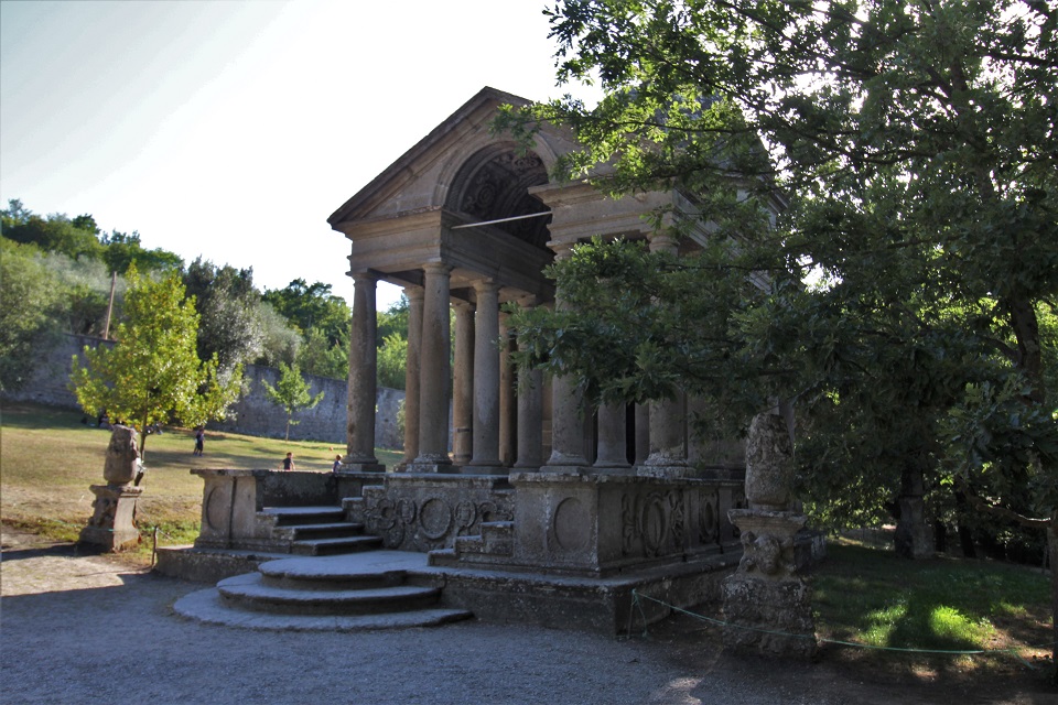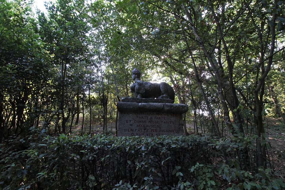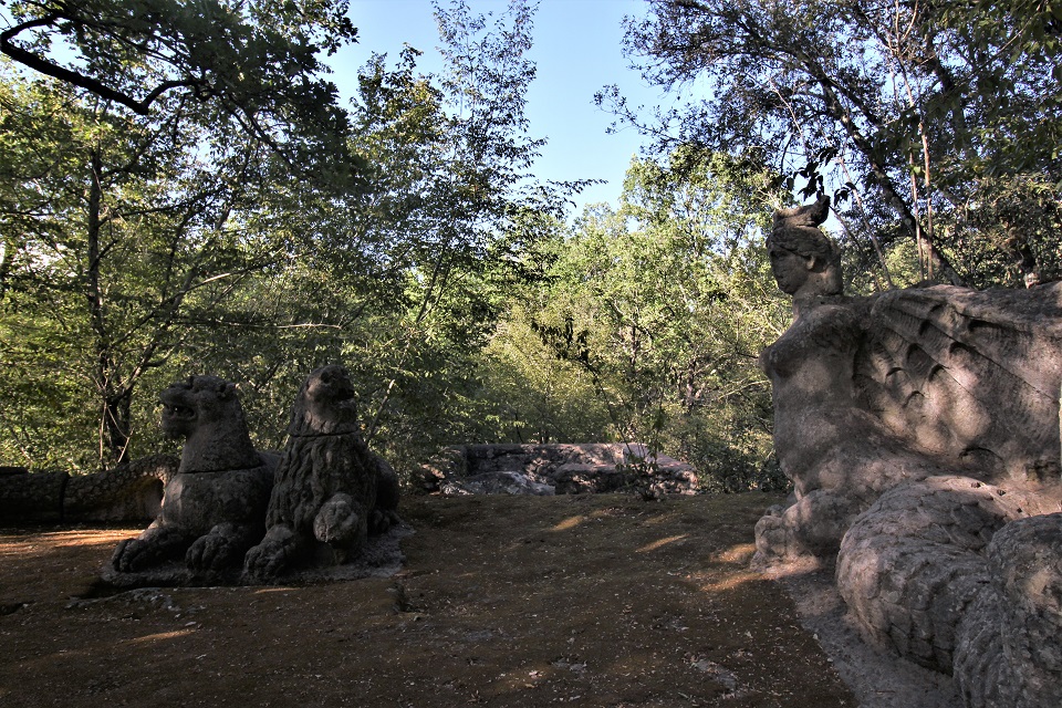 L’area, che si estende su una superficie di circa 3 ettari, custodisce sculture dedicate a personaggi e animali mitologici, edifici che riprendono il mondo classico ignorando volutamente le regole prospettiche o estetiche. Il motivo? Confondere il visitatore.