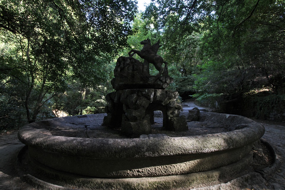 È invece dedicata a Pegaso la prima fontana del parco. Il cavallo, simbolo di passionalità e impetuosità, prepara i visitatori all’Albero-statua, ovvero alla scultura di un tronco di larice scolpito su un masso. È sempre ambientata nell’acqua la scultura che rappresenta Venere nel suo Ninfeo. La grande vasca, che richiama i ninfei di età romana, “ospita” le statue delle tre Grazie e delle tre ninfe, mentre la parete è occupata dalla statua di Venere che, poggiata su una grande conchiglia, sembra volersi perdere tra i delfini danzanti dell’altro gioco d’acqua posto poco distante.