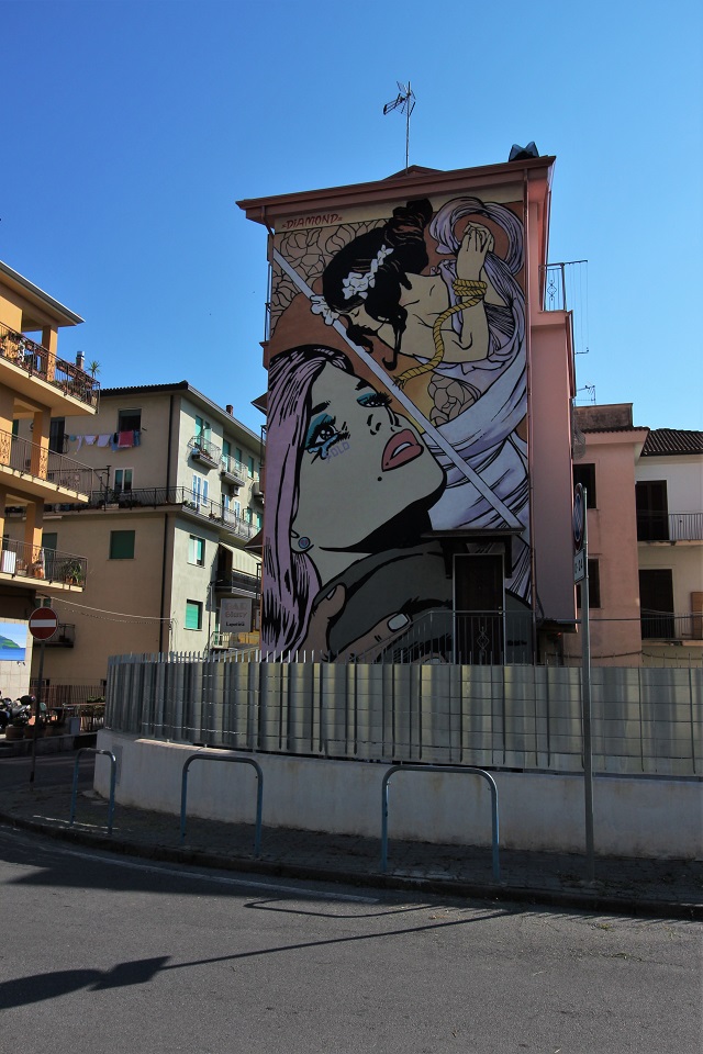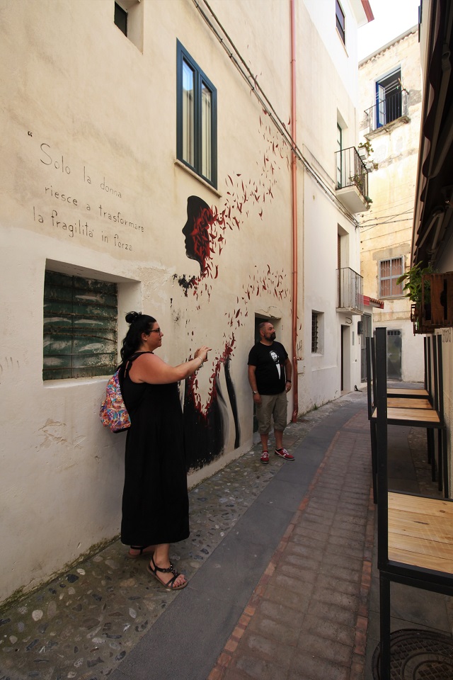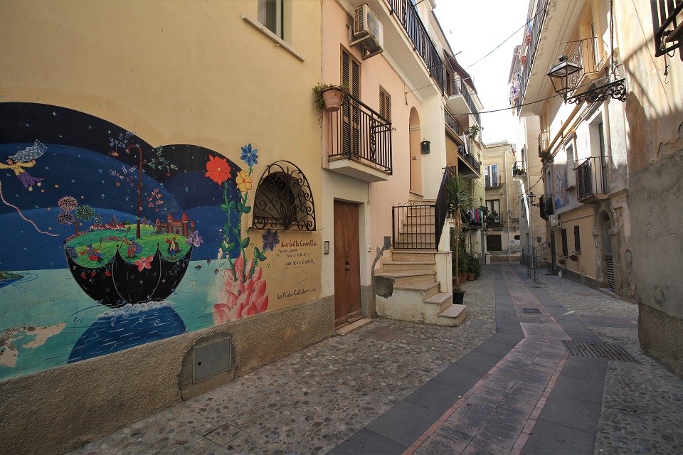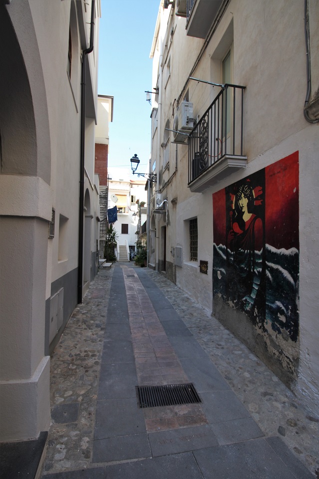 Oggi girare tra i vicoli di Diamante è come leggere una storia fatta di immagini e disegni. Perché qui tra i vicoli del piccolo borgo è possibile imbattersi nella rappresentazione di barche, pesci, mercati e favole dell’infanzia. I muri si trasformano in pagine di libri capaci di regalare sogni ed emozioni, mentre l’odore del mare, dei peperoncini e dei pipi cruschi si insinua tra i vicoli.