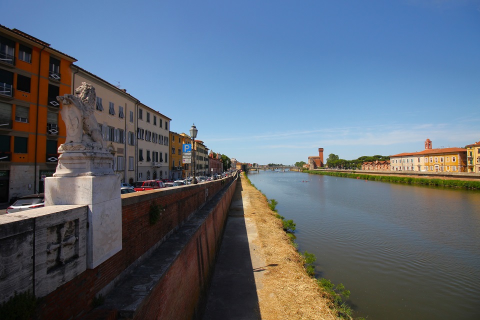 Il lungofiume assume denominazioni diverse in base al tratto. Le vie che fiancheggiano l’Arno oltre che essere luogo di ritrovo per i giovani, ospitano palazzi rinascimentali, torri e chiese. Il tratto più famoso è il Lungarno Mediceo lungo il quale possono essere ammirati il Palazzo dei Medici, il Palazzo Toscanelli e la Chiesa di San Matteo in Soarta. Sul Lungarno Gambacorti si trova la chiesa di Santa Maria della Spina, dove si trova una spina della corona di Cristo.