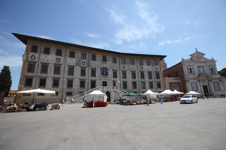 Piazza dei Cavalieri è la seconda piazza della cittadina toscana e deve il suo nome al quartier generale dell’Ordine dei Cavalieri di Santo Stefano (il Palazzo della Carovana), voluto da Cosimo I de’ Medici, che ha affidato la progettazione della piazza a Giorgio Vasari, l’architetto più famoso dell’epoca. Il Palazzo, decorato con figure allegoriche e segni zodiacali, ospita la Scuola Normale di Pisa, una delle Università più prestigiosa d’Italia. Sulla piazza si trovano inoltre il palazzo dell’Orologio, in cui un tempo si trovava la Torre della Fame, dove è morto il conte Ugolino della Gherardesca, citato da Dante nella Divina Commedia, la chiesa di Santo Stefano dei Cavalieri e la Statua di Cosimo I.