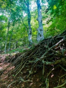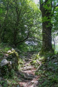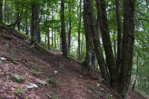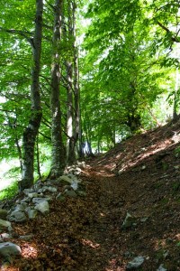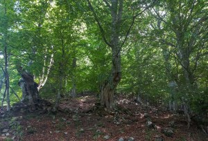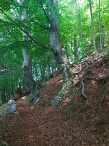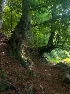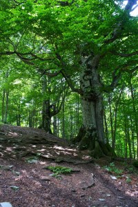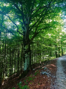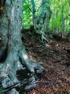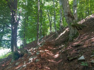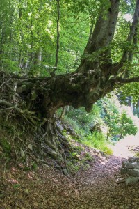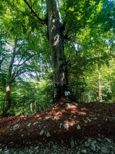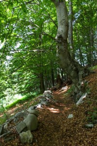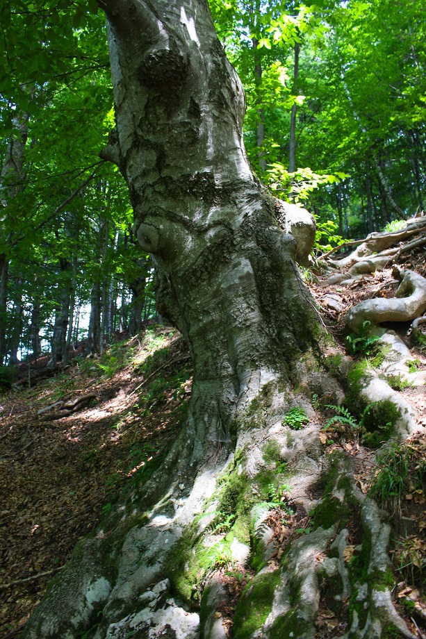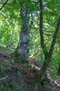 Lungo la salita, sempre nel bosco e sotto le fronde degli alberi, ci si imbatte in una faggeta secolare dove poter trovare ristoro. Qui, a 1.300 metri di altitudine si apre la strada verso il Poncione prima (con i suoi tre faggi e l’acero) e il Cul Volt in un secondo momento. Nonostante la presenza di fontane, non abbiamo trovato acqua. L’area, caratterizzata dalla presenza di rocce calcaree, è ricca di faggi anche di forme particolari.