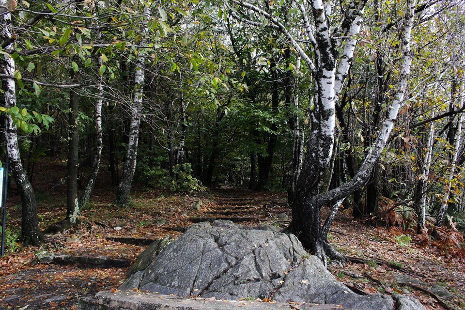 Si prosegue poi verso il giro della luna che, come suggerisce lo stesso nome, si trova in un ambiente più ombroso. I belvedere e il sole del sentiero precedente qui lasciano il posto all’ombra e ai boschi.