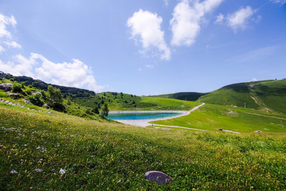 Il sentiero, che inizia nei pressi del Rifugio Ratti a due passi dalla stazione della funivia, collega altre strutture, come i rifugi Sora, Campelli e Cacciatore, e la chiesa dell’altopiano. Da questo tratto il sentiero inizia a salire, ma questo vi permetterà di ammirare il panorama e il lago artificiale con le sue acque cristalline.