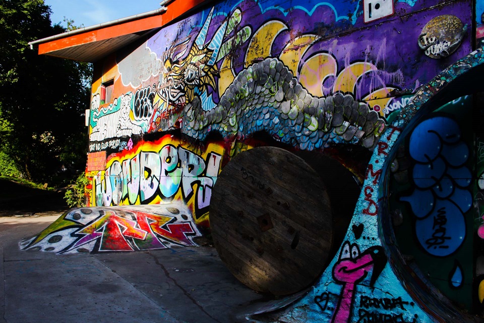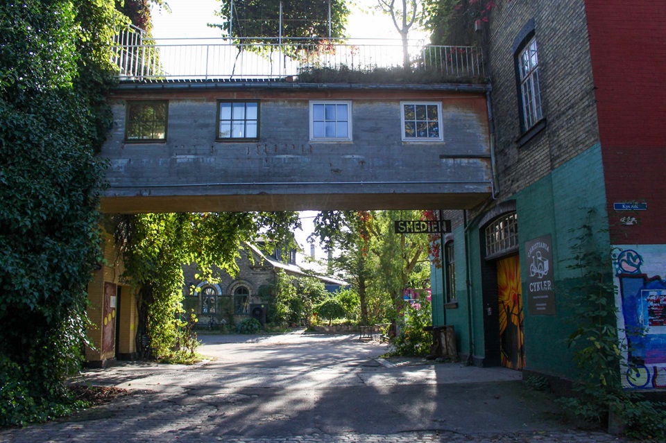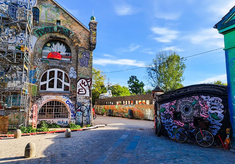 Il tour della cittadina non può che iniziare da Prinsessegade, dove si erge l’arco in legno da cui poter accedere a piedi o in bicicletta in questa comunità autogestita. Qui campeggiano le bandiere della cittadina: rossa con tre dischi gialli, come i punti delle “i” della città.